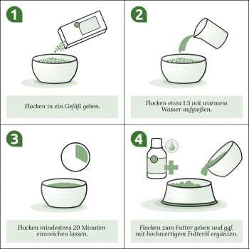 Die tägliche Futterration wird durch die schonend getrockneten, naturbelassenen Karottenflocken aufgewertet und schmeckt dem Hund besonders gut.