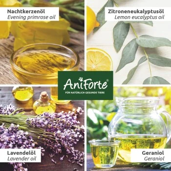 AniForte® Grasmilben-EX Spray dient der Abwehr und der Vorbeugung von Grasmilben. Es setzt sich aus einer abgestimmten Kombination ätherischer Öle und Geraniol zusammen und bietet eine effektive Unterstützung gegen lästige Parasiten.