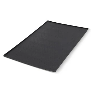 Die Futterunterlage besteht aus biegsamem, langlebigen und 100 % lebensmittelechtem Silikon. Die Oberfläche ist besonders rutschfest durch die dort befindliche Noppenstruktur und besitzt durch den extra hohen Rand einen Auslaufschutz. So gehören Wasserflecken und Futterreste der Vergangenheit an. Zudem ist sie wasserdicht und entsprechend sehr leicht zu reinigen.