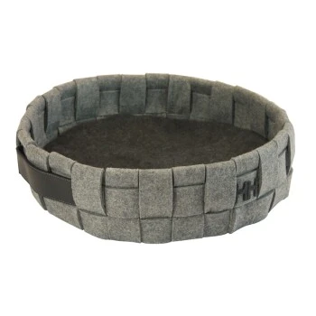 Dieser zeitlose Hundekorb passt sich perfekt in viele Wohnambiente ein. Seine schlichte Eleganz machen ihn zum Eyecatcher, der Ihrem Liebling hohen Liegekomfort bietet. Die robusten Kunstledergriffe sind ein zusätzlicher Hingucker, der den Filzkorb so schick macht.