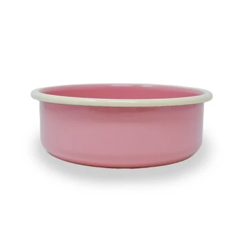 Emaille ist pulverisiertes Glas, mit dem die Oberfläche des Napfes versiegelt wird.