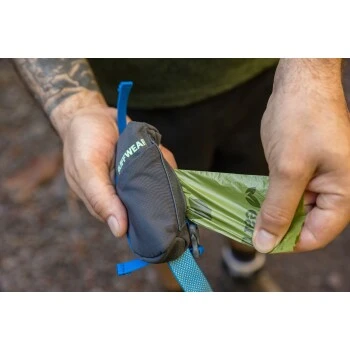 Für einen einfachen und bequemen Kotbeutel-Zugriff lässt sich die Stash Bag Mini™ als schlankes, leichtes und stabiles Leinenzubehör an einen Leinenhandgriff befestigen. Sie hat einen Reißverschluss mit einem internen Schlüsselhaken und eine interne Mesh-Tasche zum Verstauen einer Rolle von Kotbeuteln.Es sind die kleinen Details, die im Alltag den großen Unterschied machen: ein griffiges Schlagpolster unter dem Reißverschluss welches hilft die manchmal aneinander klebenden Plastikseiten der Beutelchen zu öffnen und ein äußeres Ziehband zum Anbringen der gefüllten Kotbeutel bis zum nächsten Mülleimer. Die äußere Stretch-Netztasche bietet einfachen Zugriff auf kleine Gegenstände wie Kotbeutel oder einen Schlüsselanhänger. Es ist kompatibel mit allen Kotbeutelrollen und wird mit 15 Earth Rated® Kotbeutel geliefert.